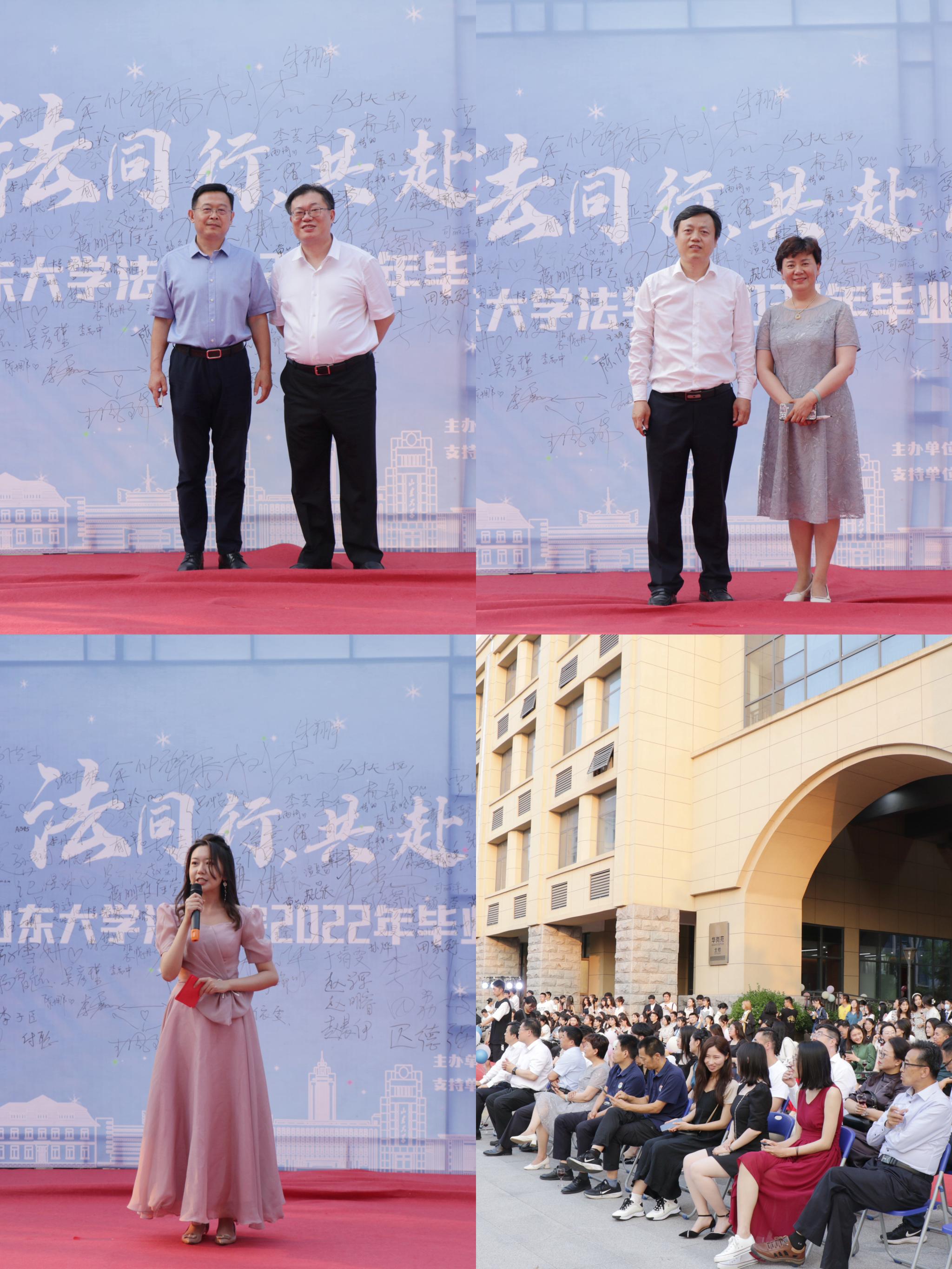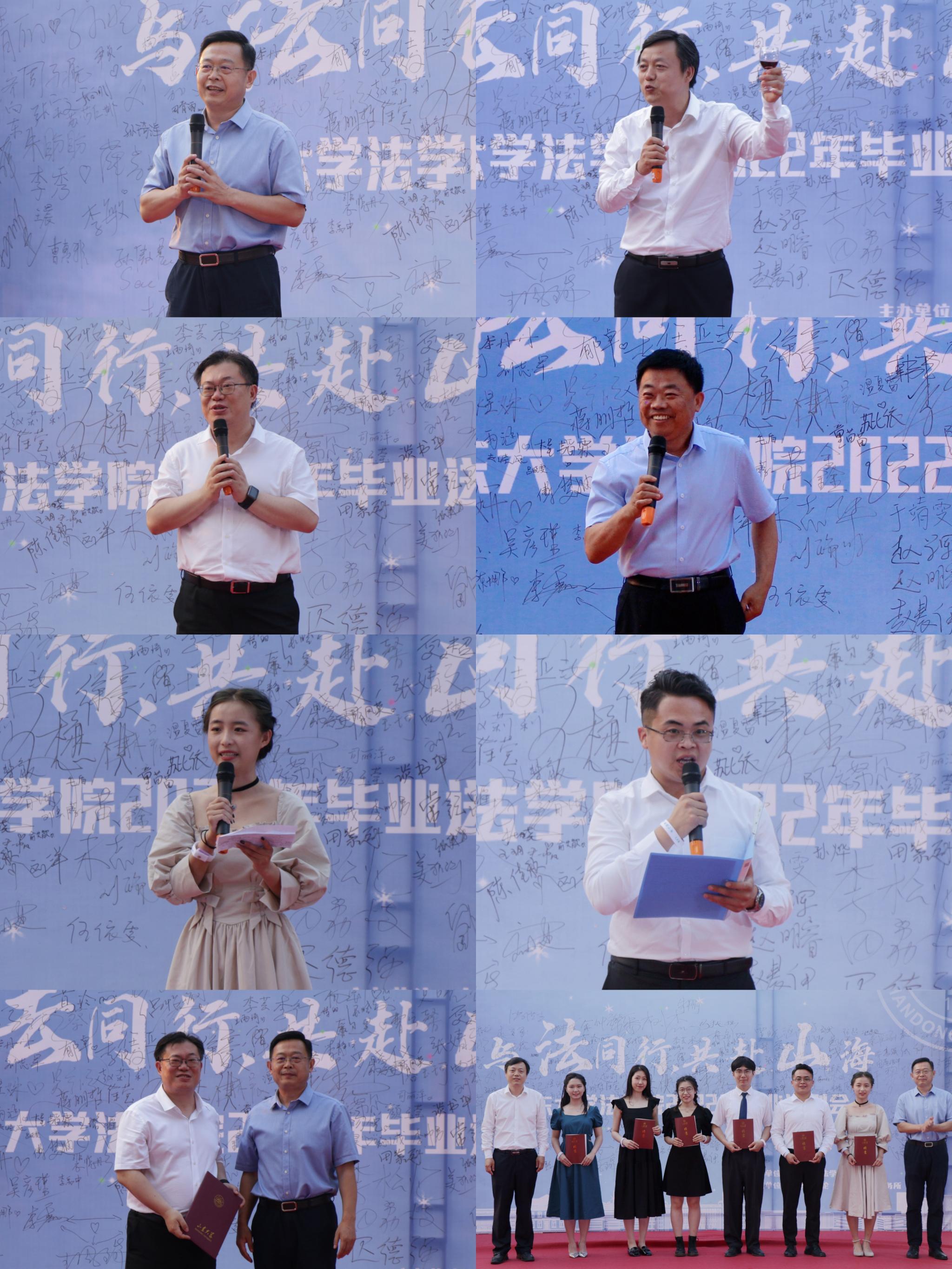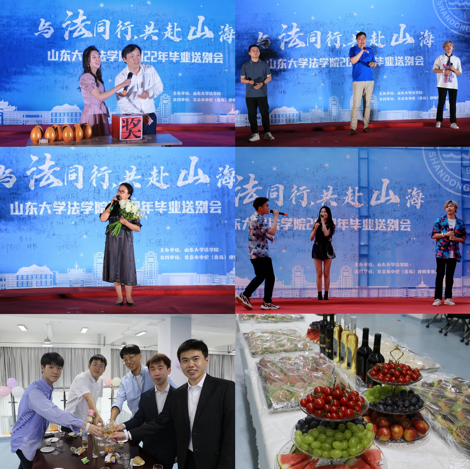 6月20日,2024白菜网址官网大全“与法同行,共赴山海”2022年毕业送别会在青岛校区华岗苑北楼广场举行。2024白菜网址官网大全党委书记于向明,2024白菜网址官网大全院长、2024白菜网址官网大全(威海)院长周长军,校友代表、北京市中伦(青岛)律师事务所权益合伙人、2024白菜网址官网大全合作导师韩大更,学院部分教师和近300名毕业生参加了送别会。活动由2020级硕士研究生庞琦主持。