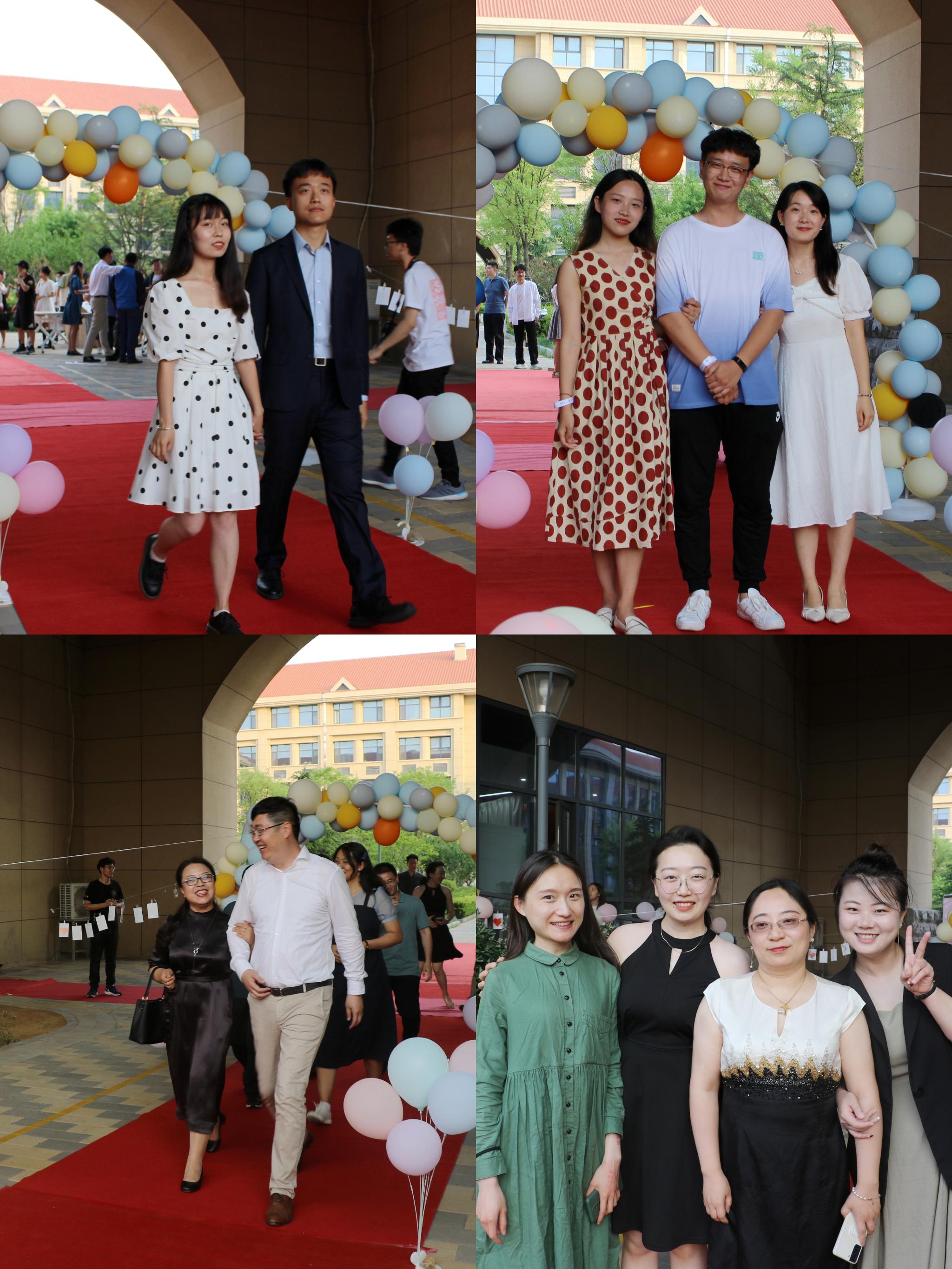 在红毯秀环节,2022届毕业生身着盛装,满怀激动与喜悦之情,相约踏上红毯,短短的红毯凝聚了学子数年的求学之路,稳稳承载着他们走出母校,迈向新的人生征程。毕业生在签名墙上一一签名留念,与几年前入学时的签名一样充满喜悦,同时又多了几分从容,添了几分留恋。
