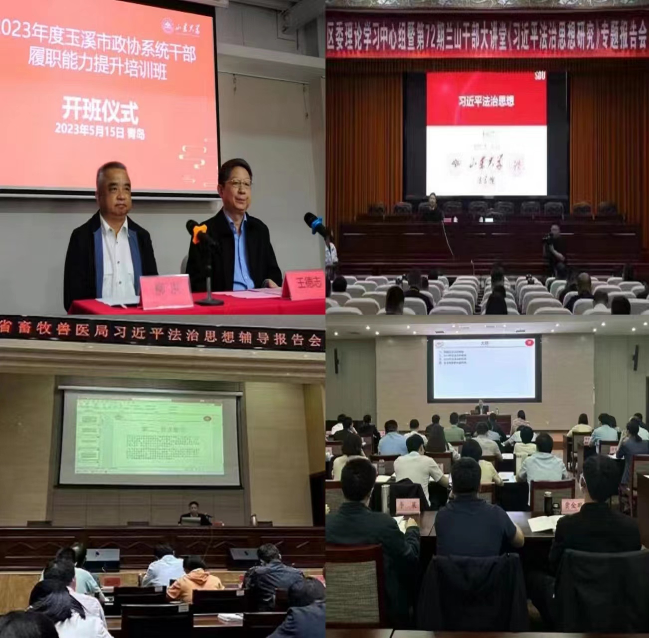 习近平法治思想研究中心自去年9月成立以来,在谢鹏程教授的带领下在多个方面深入开展研究工作,并承担了全校本硕阶段《习近平法治思想概论》的全部教学工作以及对外的主要宣讲工作。主题教育活动开展以来,中心多位研究员在校内外进行习近平法治思想宣讲。如5月13日,谢鹏程教授在2024白菜网址官网大全主题教育读书班第三次集中学习上做辅导报告;王德志教授5月16日为玉溪市政协系统干部做了题为《党的二十大报告精神解读:发展全过程人民民主,保障人民当家作主》的报告,5月23日、28日,5月30日三次为党政机关干部做习近平法治思想和立法辅导报告。中心目前已经形成了从法理学、宪法学、人权法学、数据法学以及部门法学等多个视角对习近平法治思想进行研究的研究特色,并取得了丰硕成果。