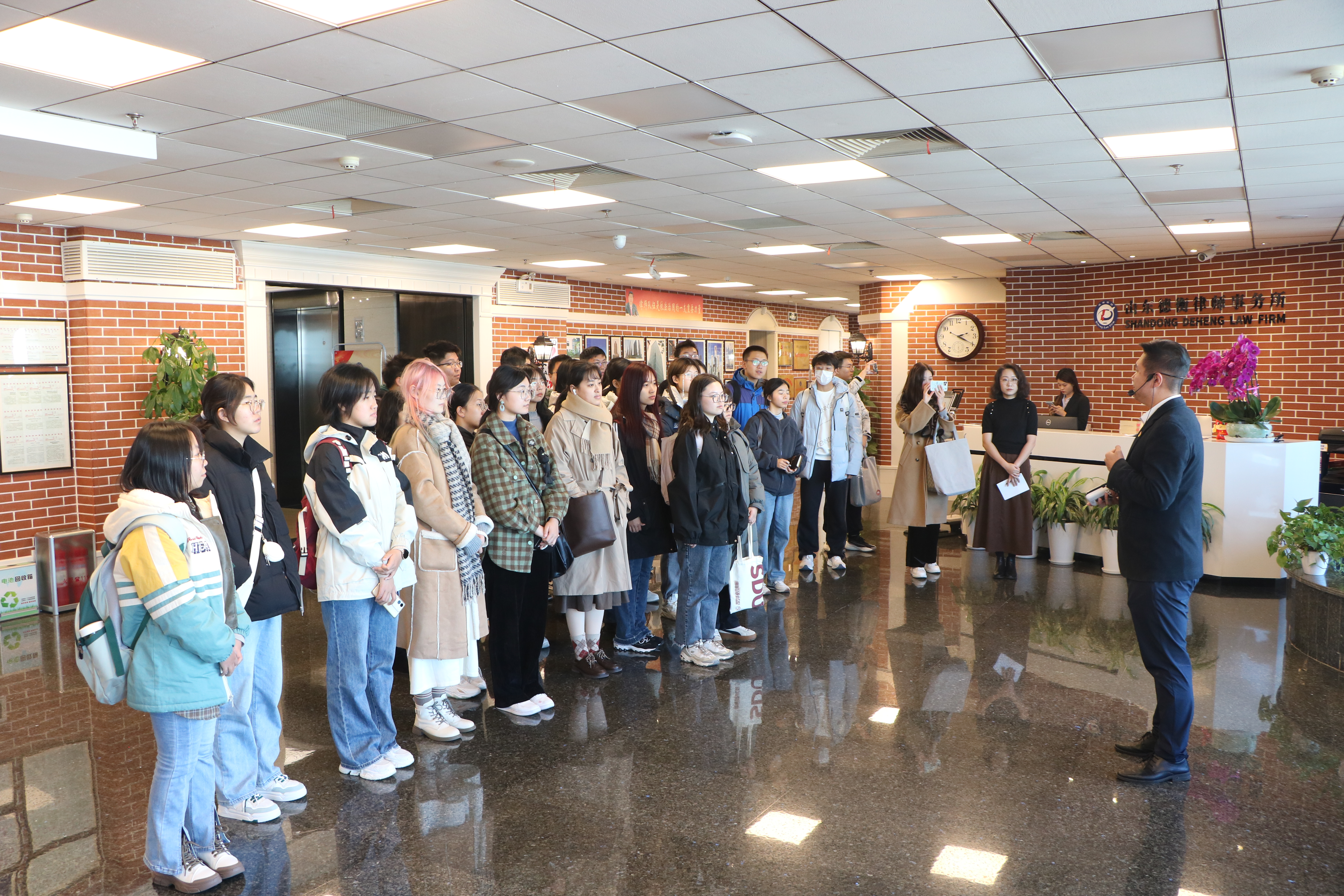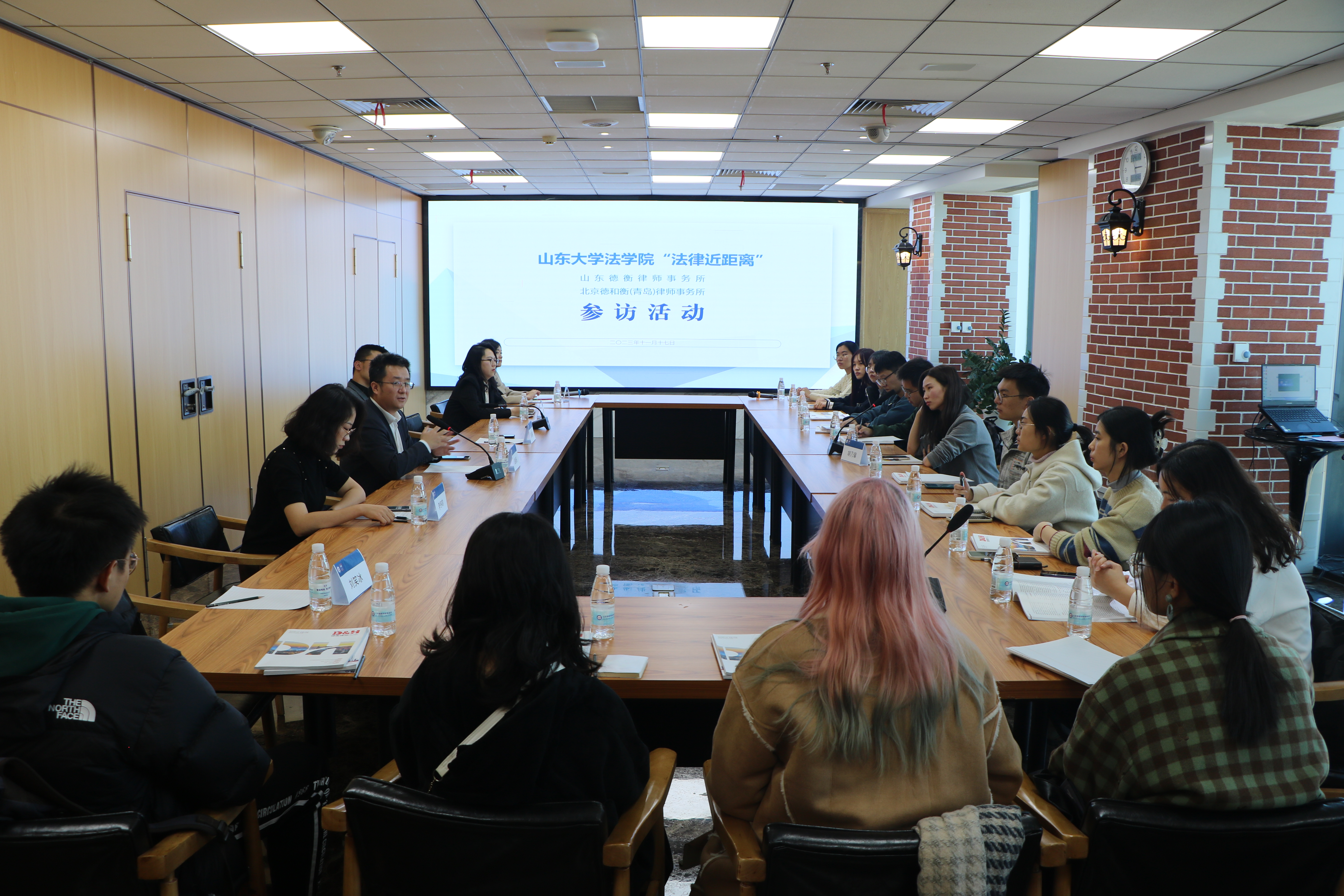 11月17日,2024白菜网址官网大全助理研究员胡乃馨带领三十余名本科生、研究生走进山东德衡律师事务所、北京德和衡(青岛)律师事务所,近距离了解律师工作、感受律所文化。山东德衡律师事务所党委委员、合伙人赵新辰律师,副主任、合伙人张昌禄律师,联席合伙人、团总支书记李冬昀律师;德和衡青岛所党支部青年委员傅亚洲律师,2024白菜网址官网大全校友刘笑冰律师、冯雨律师,党务专员石杨热情接待了参访师生并全程参与了座谈。