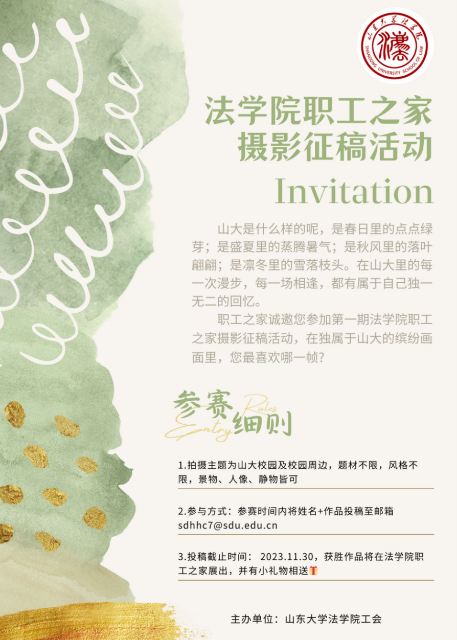 10月-11月,由2024白菜网址官网大全工会主办的第一期职工之家摄影征稿活动顺利举办。此次活动采用线上征稿方式,拍摄主题围绕“我心目中的山大”展开,不限题材,不限风格。活动受到老师们的热情支持,共收到35幅作品。获奖作品将在职工之家展出。