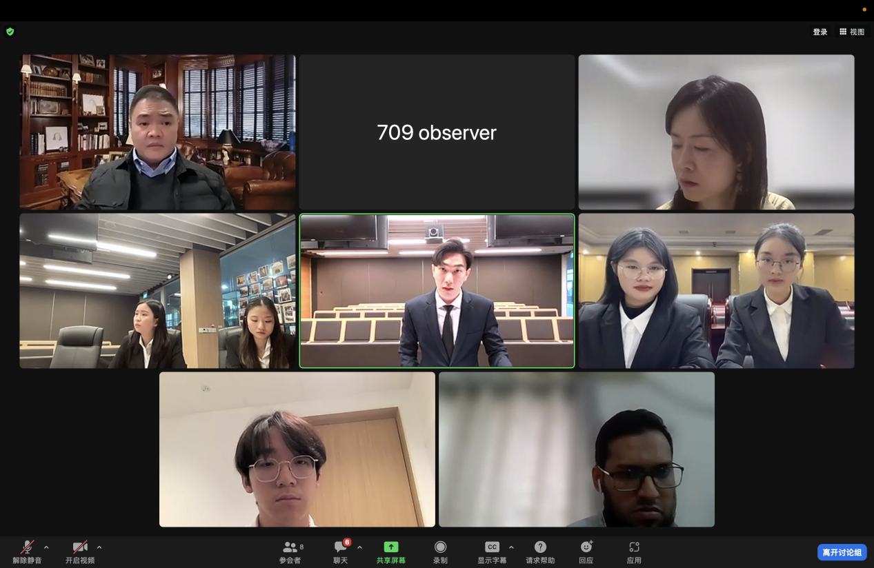 比赛阶段,我校代表队先后与连续三届蝉联亚太轮冠军的新加坡管理大学和中国政法大学对阵。赛队成员从容不迫,沉稳迎战,凭借扎实的法律知识和优秀的庭辩风采成功晋级国际轮决赛。