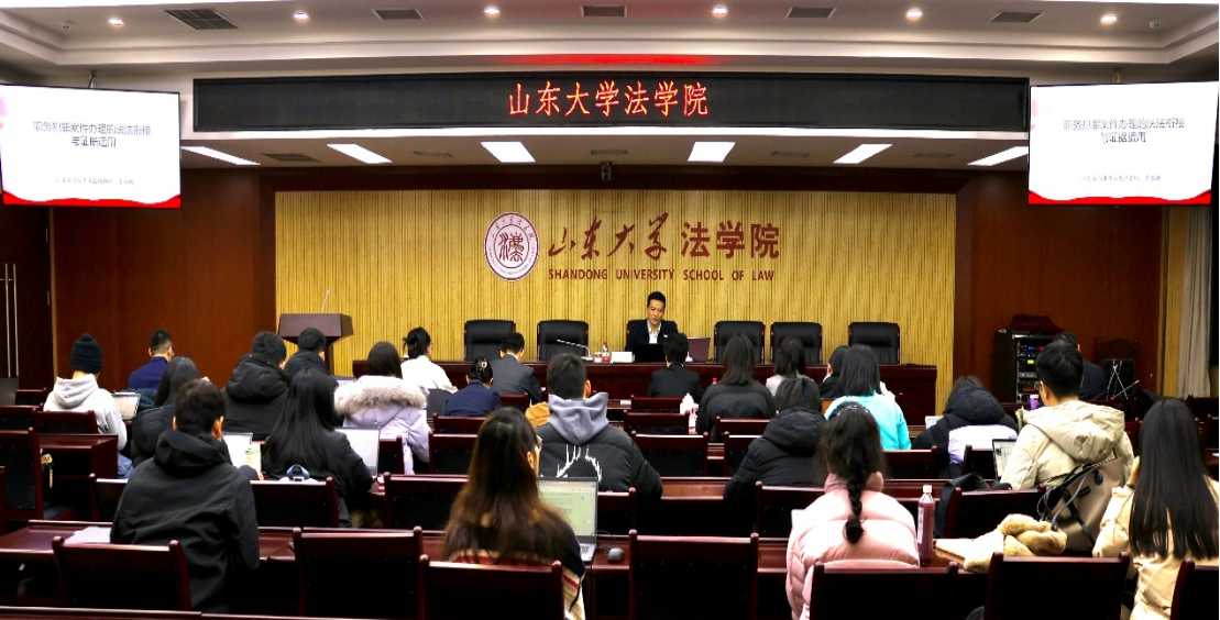 12月26日,“555050注册大白菜检察实务大讲堂”第一期于华岗苑举办。聊城市高唐县人民检察院党组副书记、副检察长袁家鹏以“职务犯罪案件办理的法法衔接与证据适用”为题作学术报告。讲座由2024白菜网址官网大全副教授、博士生导师赵恒主持,青岛市人民检察院第三检察部副主任、三级高级检察官谢颖,青岛市中级人民法院刑二庭副庭长、四级高级法官赵彩霞,北京市东卫(青岛)律师事务所副主任、高级合伙人沈彦敏与谈,四十余名师生现场参会。
