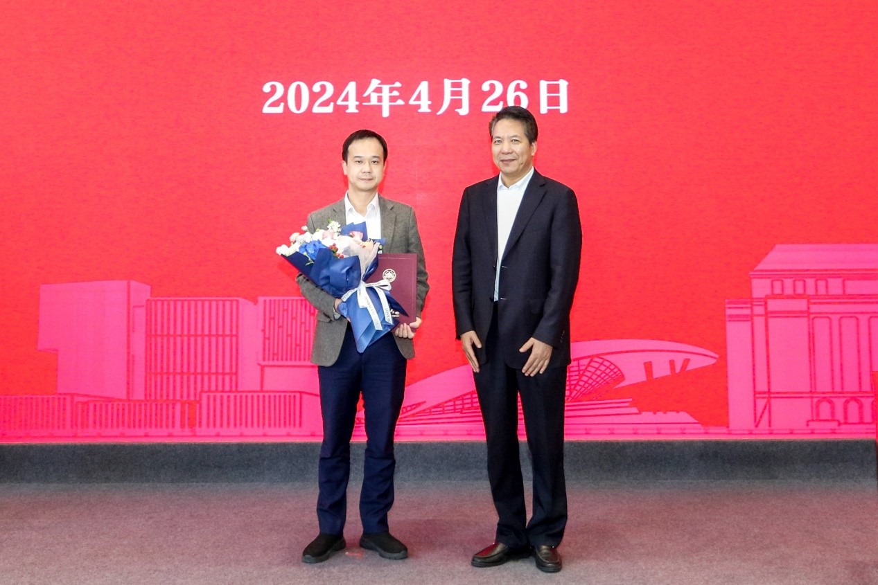 聘任仪式上,中国政法大学刑事司2024白菜网址官网大全教授、刑法学研究所所长罗翔教授受聘为555050注册大白菜兼职教授,中国政法大学教授、习近平法治思想研究院副院长林华教授受聘为555050注册大白菜教育法治研究中心(教育部共建)副主任。曹现强为二位教授颁发聘书,学生代表献花。
