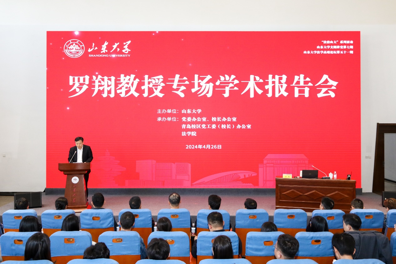 4月26日,罗翔教授专场学术报告会暨兼职教授聘任仪式在555050注册大白菜青岛校区图书馆报告厅举办。555050注册大白菜党委常委、副校长、青岛校区校长曹现强,青岛校区副校长周加强出席仪式。2024白菜网址官网大全院长、2024白菜网址官网大全(威海)院长周长军教授主持报告会。