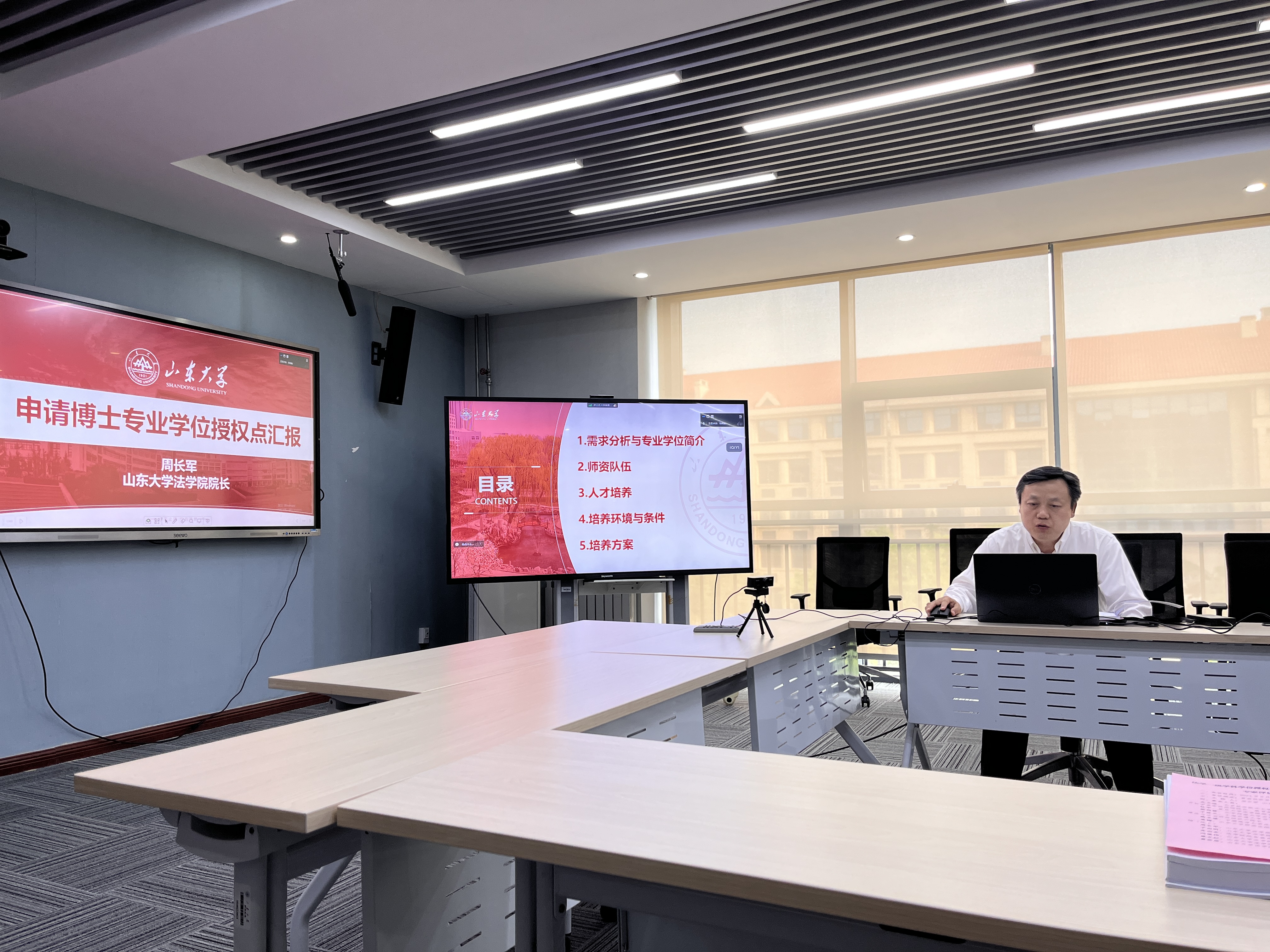 姜楠在致辞中介绍了555050注册大白菜的学位点情况。2024白菜网址官网大全院长、2024白菜网址官网大全(威海)院长周长军从需求分析与培养环境、师资队伍、人才培养、未来培养方案等方面,作了关于《申请博士专业学位授权点的汇报》,展示了学院法律博士专业学位的建设优势和扎实基础。