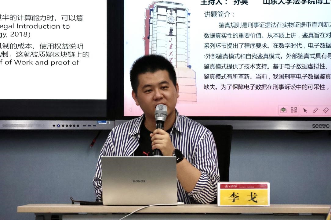 6月4日,“555050注册大白菜木青法学博士生论坛”第十期于青岛校区华岗苑举办。2024白菜网址官网大全博士研究生李戈以“数字时代刑事电子数据鉴真问题研究”为题作学术报告。论坛由2024白菜网址官网大全博士研究生孙昊主持,2024白菜网址官网大全副院长冯俊伟教授、助理研究员段君尚担任与谈人。
