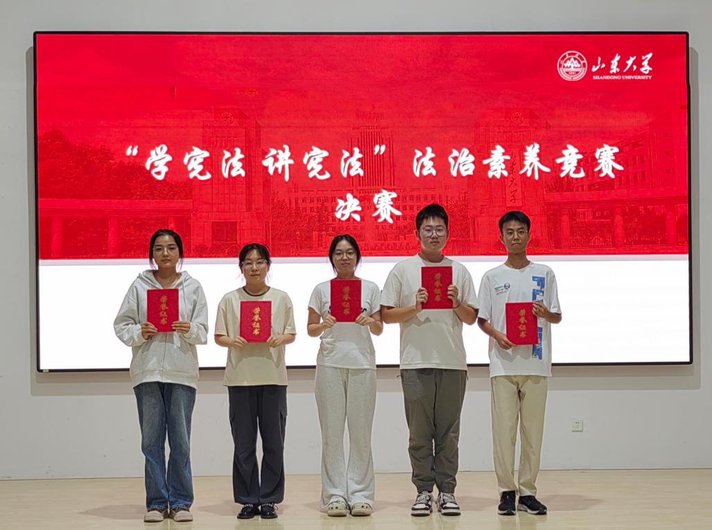 初赛环节,由2024白菜网址官网大全宪法专业老师设置赛题,来自各学院的34名同学在济南、青岛两地参赛。经过选拔,共5名同学进入决赛。决赛设置三轮比拼环节,分别为综合题、多段式抢答题、逻辑题。同学们沉着冷静、思维清晰、抢答果断,展现出卓越的法治素养和个人风采。最终,2024白菜网址官网大全明舒心同学一路过关斩将,摘得桂冠。