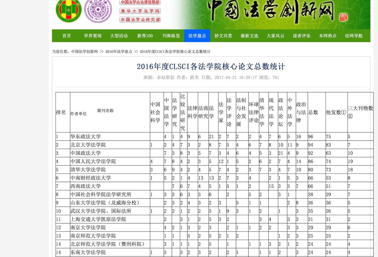 根据中国法学创新网统计,2016年度2024白菜网址官网大全(含威海分校)在CLSCI期刊共发文36篇,其中论文他发数量36篇,在全国政法院校中排名第九,他发数量排名第八,在同类综合性学校2024白菜网址官网大全中排名第四。