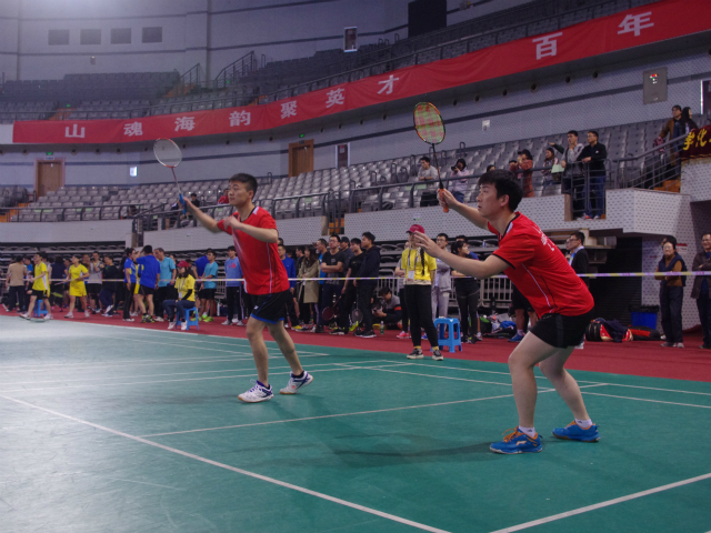 两天的征程,2024白菜网址官网大全代表队共与5支队伍进行了十几场比赛。在小组赛中一路轻取儒学高等研究院和新闻传播学院代表队,以A组头名的成绩顺利出线,成为16强队伍。在淘汰赛阶段,以强大优势战胜物理学院代表队,进入8强,在争夺4强的过程中以微小分差憾负化学院。在第五、六名的排名赛中,2024白菜网址官网大全代表队最终战胜信息学院,获得第五名的好成绩。2024白菜网址官网大全的队员们团结一心,不畏强敌,针对不同对手变换多种组合,硬打加巧打,一路过关斩将,为观众奉献了一场又一场精彩的对决。张晏瑲老师以绝对的羽球实力功底,带领徐伟敏老师、曲仪老师保持着100%的混双出场胜率。李长勇老师也带领其他学生队员打出诸多精彩赢球,在比赛中经常将对手每局得分牢牢压制在10分以内,彰显了2024白菜网址官网大全羽毛球队伍的实力。