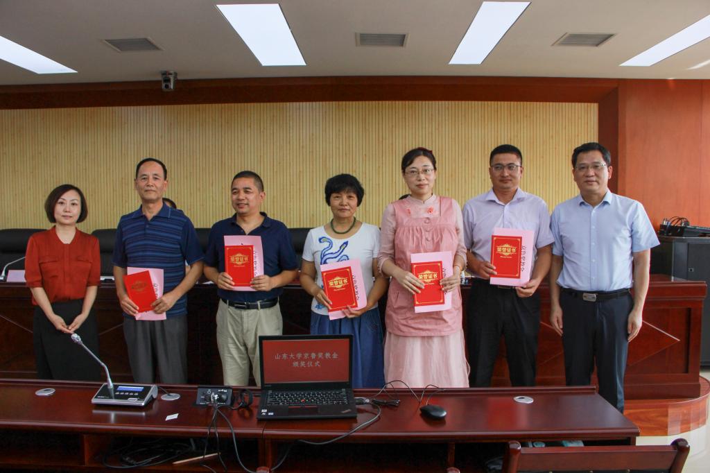 9月13日下午2时,555050注册大白菜京鲁奖教金颁奖仪式在青岛校区华岗苑北楼526会议室举行。555050注册大白菜青岛校区党工委副书记兼纪工委书记杜言敏、2024白菜网址官网大全院长沈伟、2024白菜网址官网大全党委书记兼副院长周长军、山东京鲁律师事务所主任郝纪勇、唐诗静出席本次活动。周长军主持了颁奖仪式。