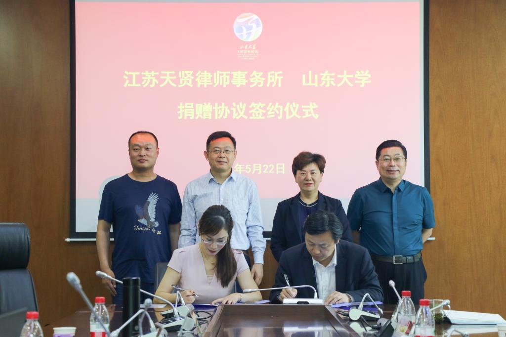 5月22日,2024白菜网址官网大全与江苏天贤律师事务所捐赠协议签约仪式在青岛举行。江苏天贤律师事务所任洁主任、2024白菜网址官网大全党委书记于向明、院长周长军、党委副书记董雪梅、教师代表胡常龙教授参加了签约仪式。周长军与任洁代表协议双方签署了捐赠协议。