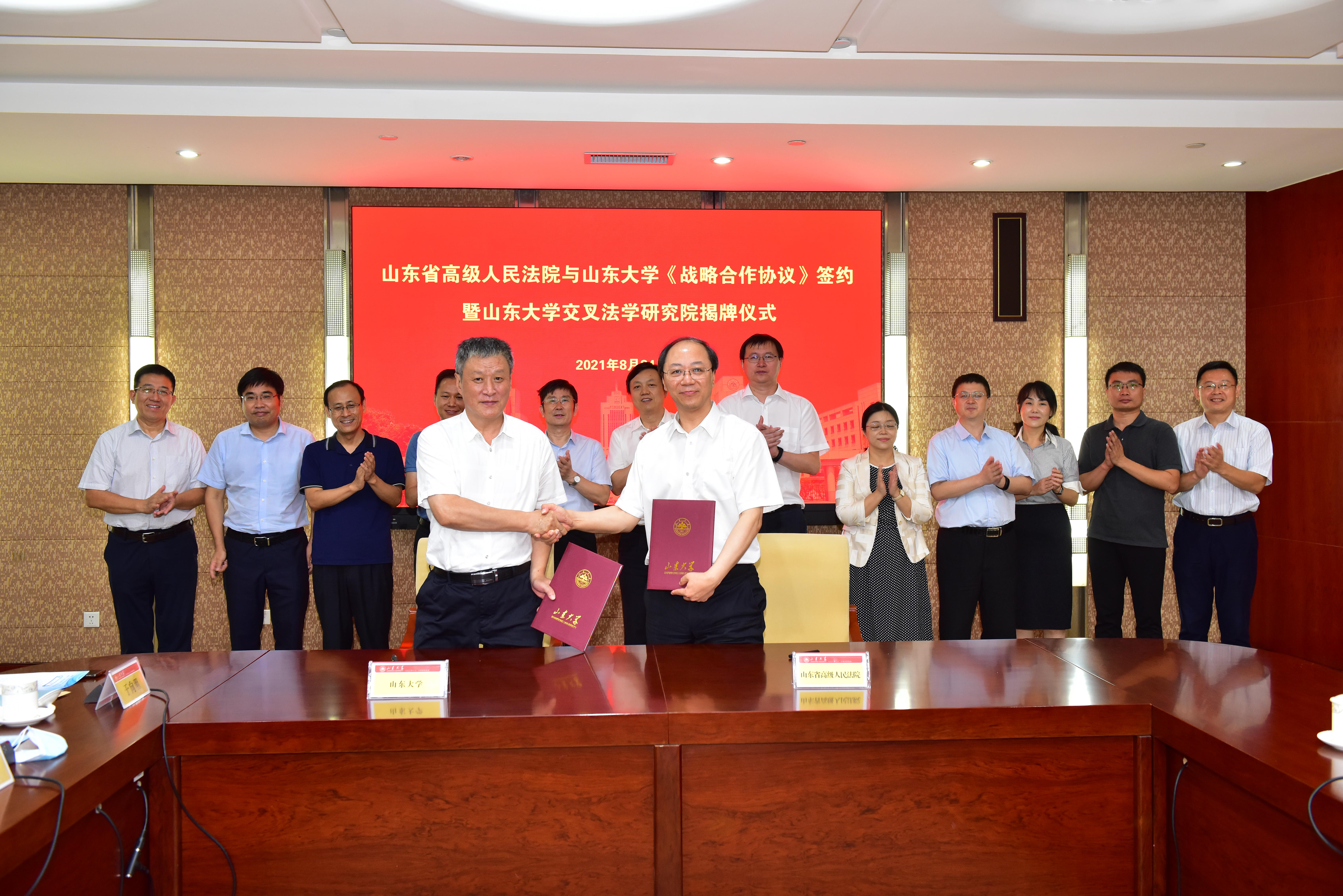8月24日上午,555050注册大白菜与山东省高级人民法院院校合作签约暨555050注册大白菜交叉法学研究院揭牌仪式在中心校区明德楼举行。省法院党组副书记、副院长王闯,555050注册大白菜常务副校长王琪珑出席活动并讲话,副校长、青岛校区校长韩圣浩出席活动。王闯与王琪珑为555050注册大白菜交叉法学研究院和山东司法研究基地揭牌,并签订院校合作协议。王闯与韩圣浩代表院校互相赠书。