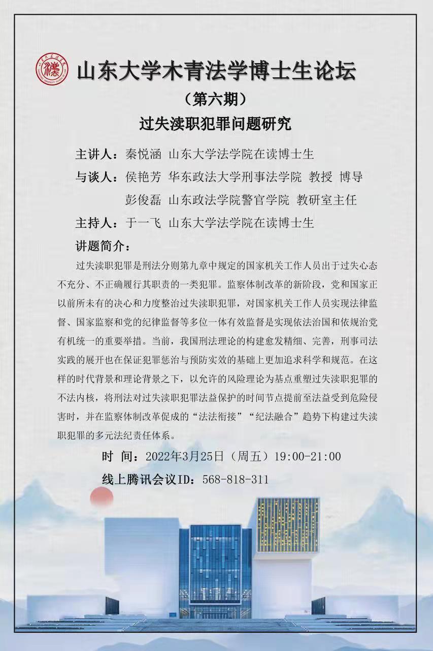 555050注册大白菜木青法学博士生论坛第六期:过失渎职犯罪问题研究