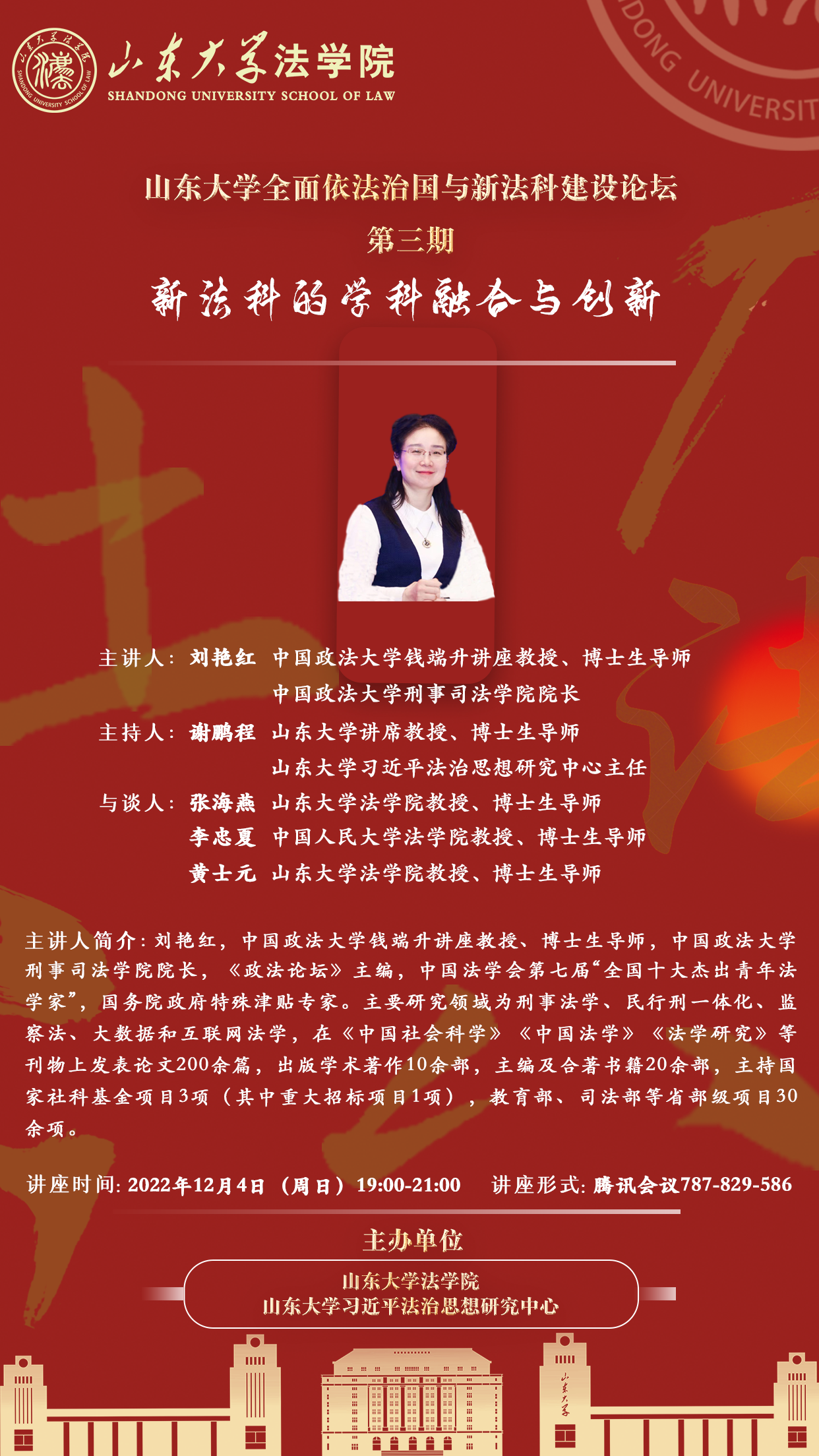 讲座预告 | 555050注册大白菜全面依法治国与新法科建设论坛第三期:新法科的学科融合与创新