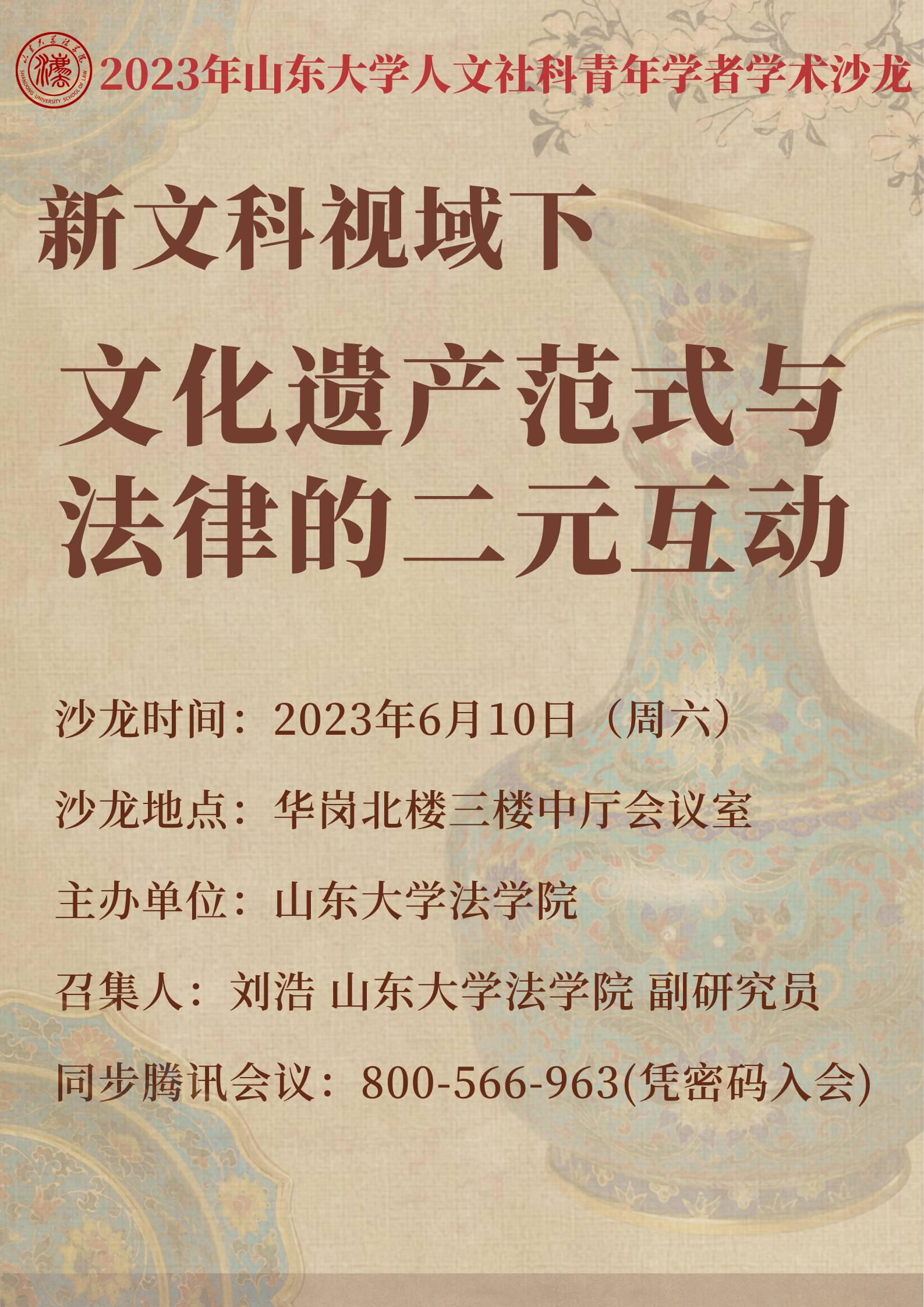 讲座预告 | 2023年555050注册大白菜人文社科青年学者学术沙龙:新文科视域下文化遗产范式与法律的二元互动