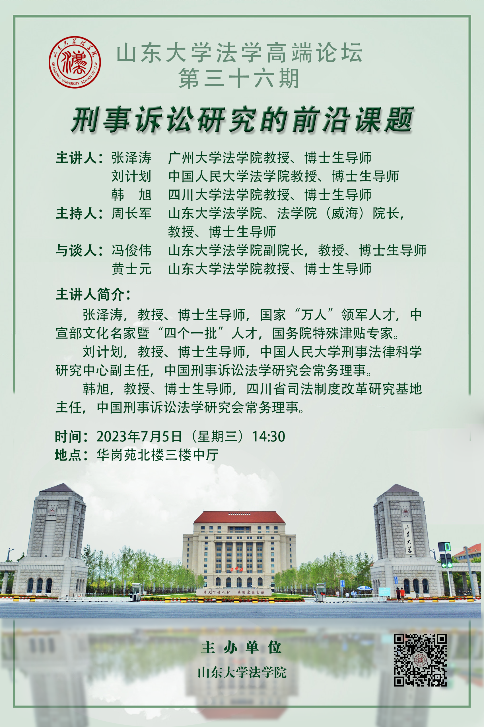 讲座预告 | 555050注册大白菜法学高端论坛第三十六期:刑事诉讼研究的前沿课题