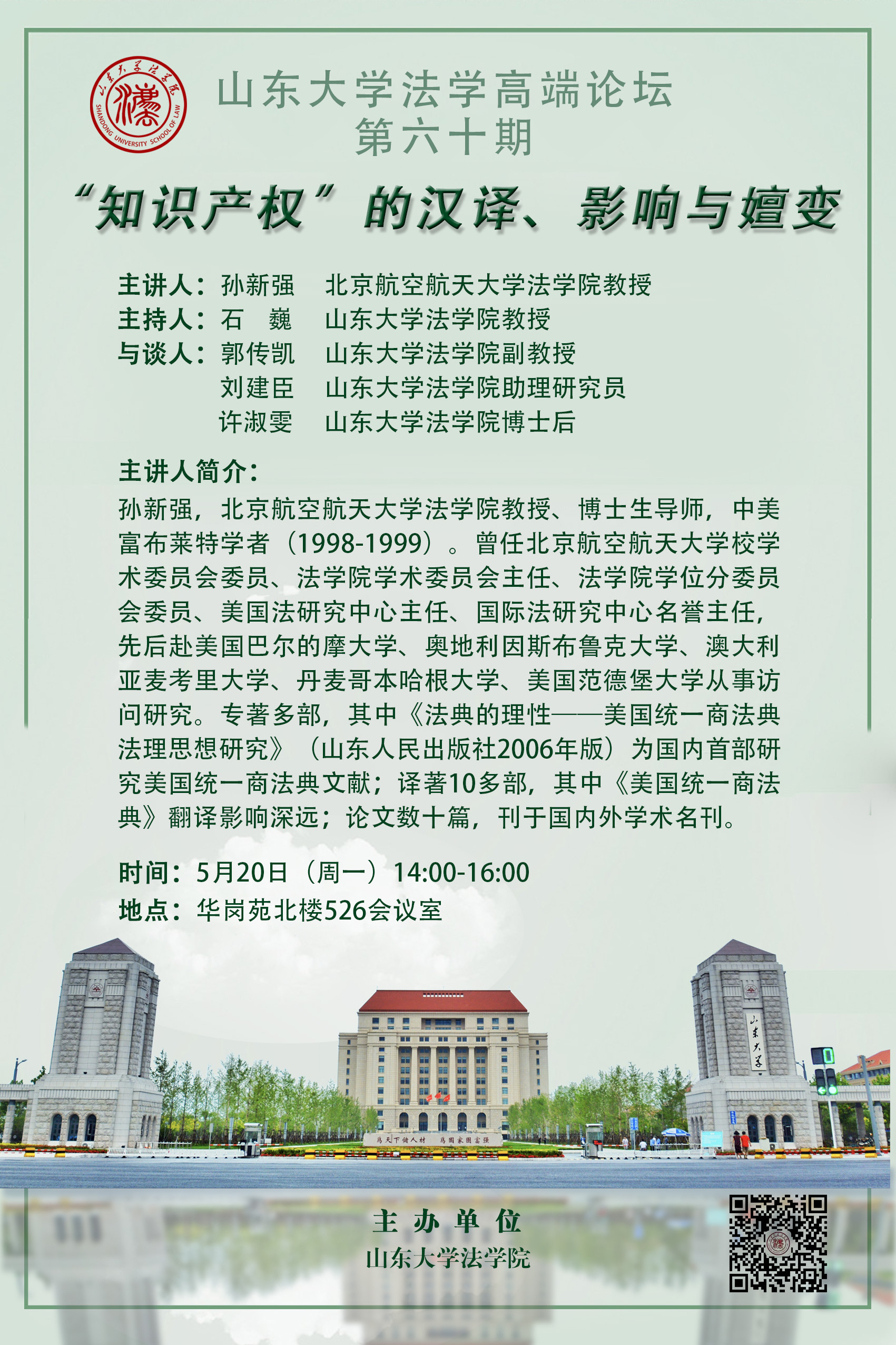 讲座预告 | 555050注册大白菜法学高端论坛第六十期:“知识产权”的汉译、影响与嬗变