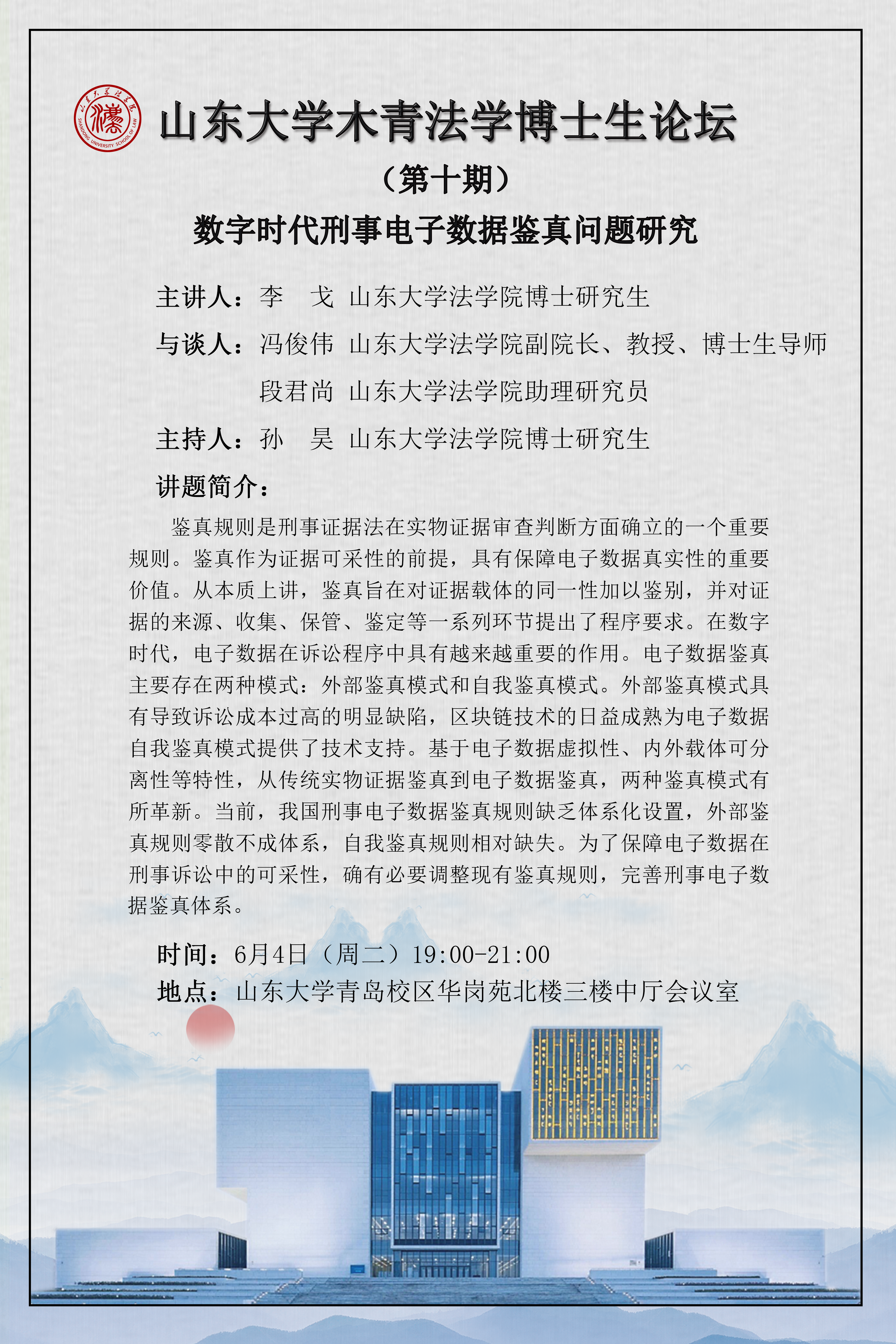 讲座预告 | 555050注册大白菜木青法学博士生论坛(第十期):数字时代刑事电子数据鉴真问题研究