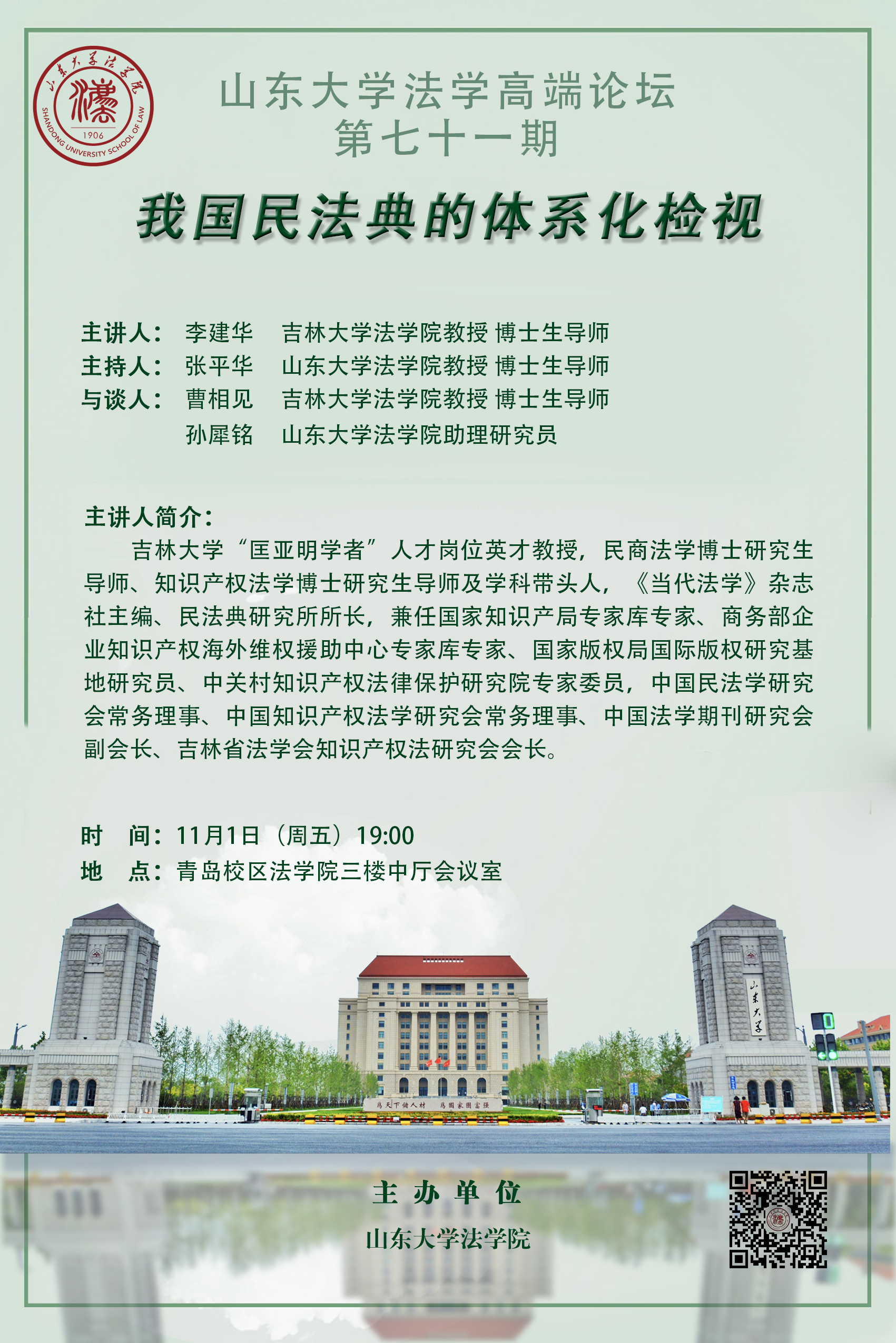 讲座预告|555050注册大白菜法学高端论坛第七十一期:我国民法典的体系化检视