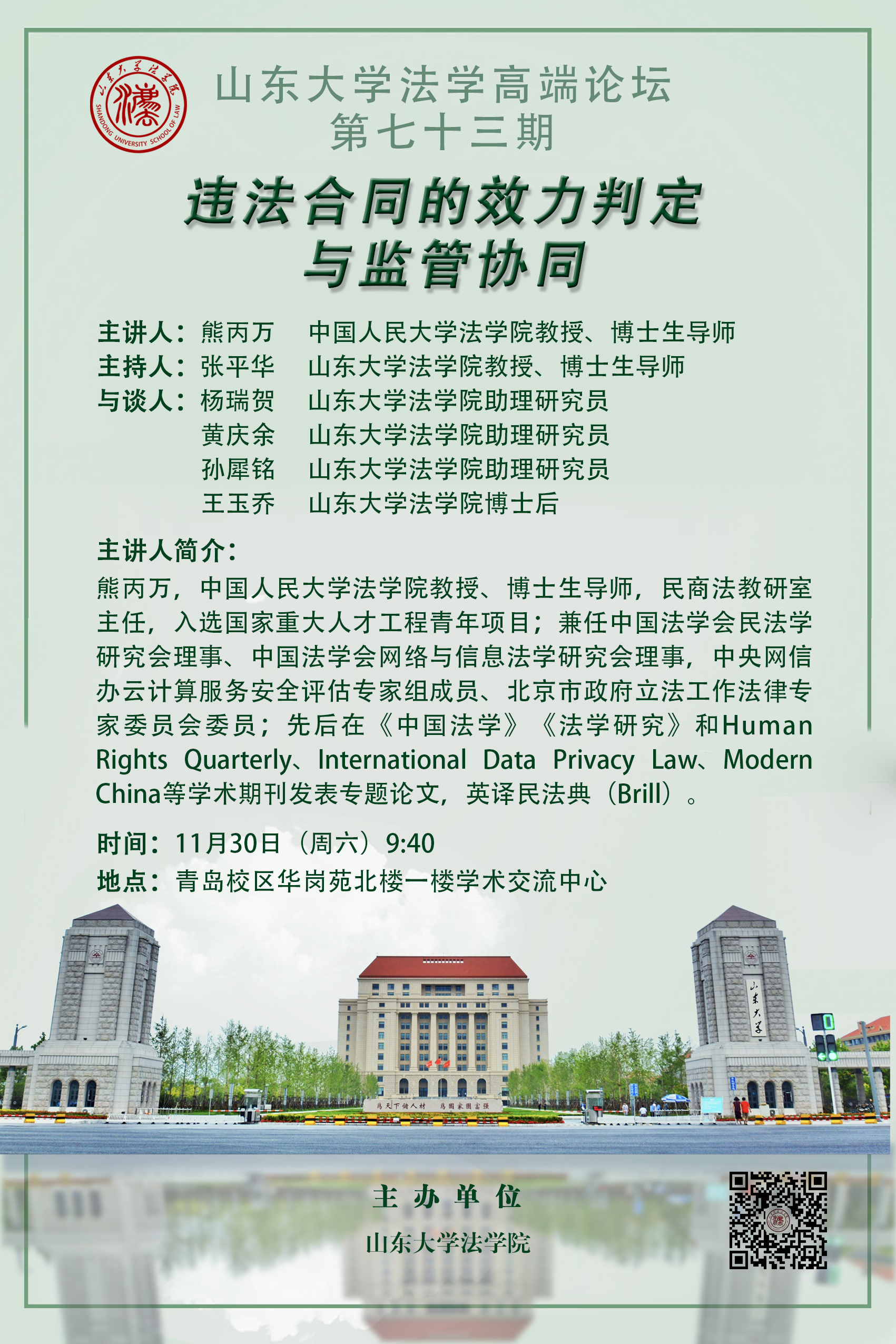 讲座预告 | 555050注册大白菜法学高端论坛第七十三期:违法合同的效力判定与监管协同