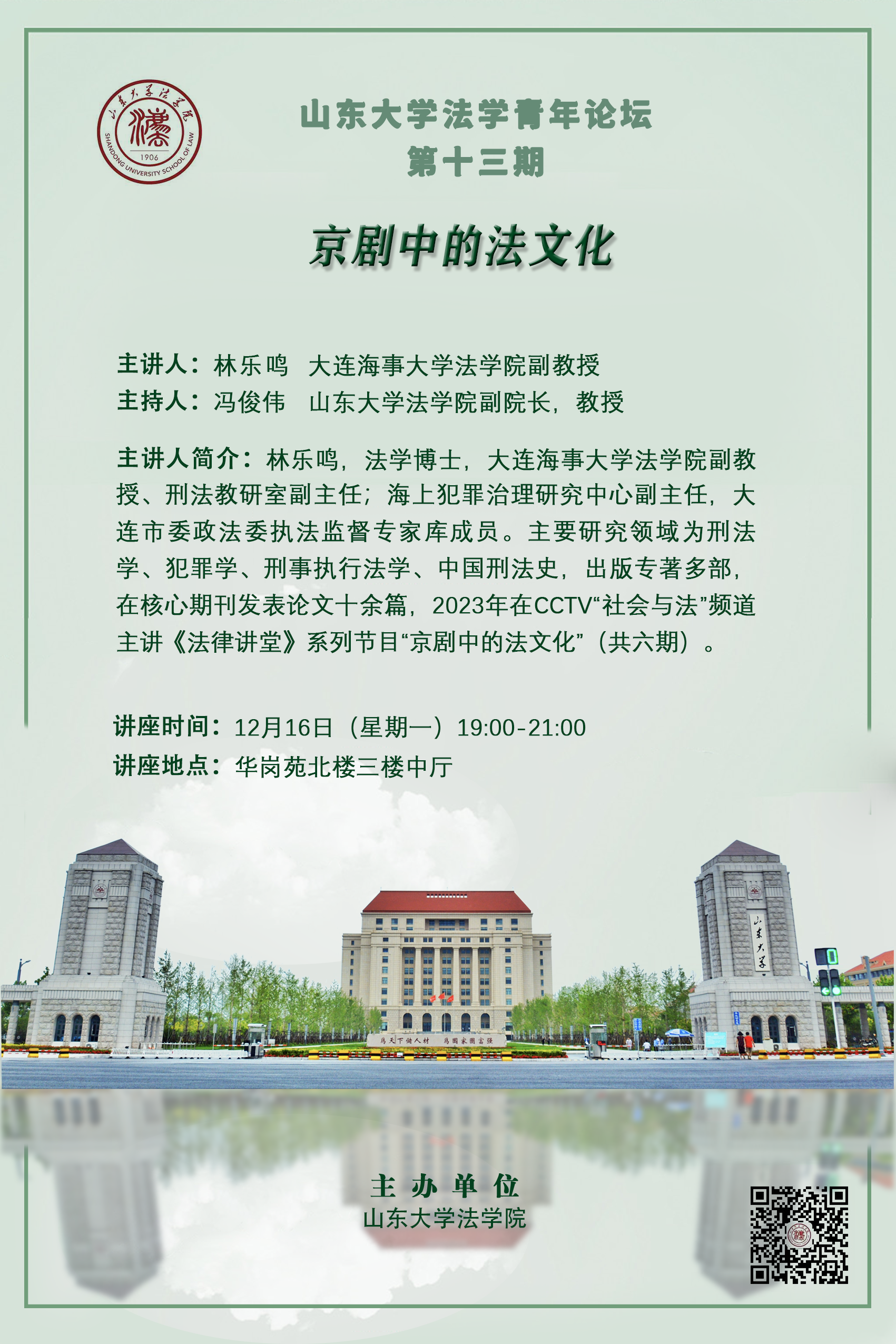 讲座预告 | 555050注册大白菜法学青年论坛第十三期:京剧中的法文化