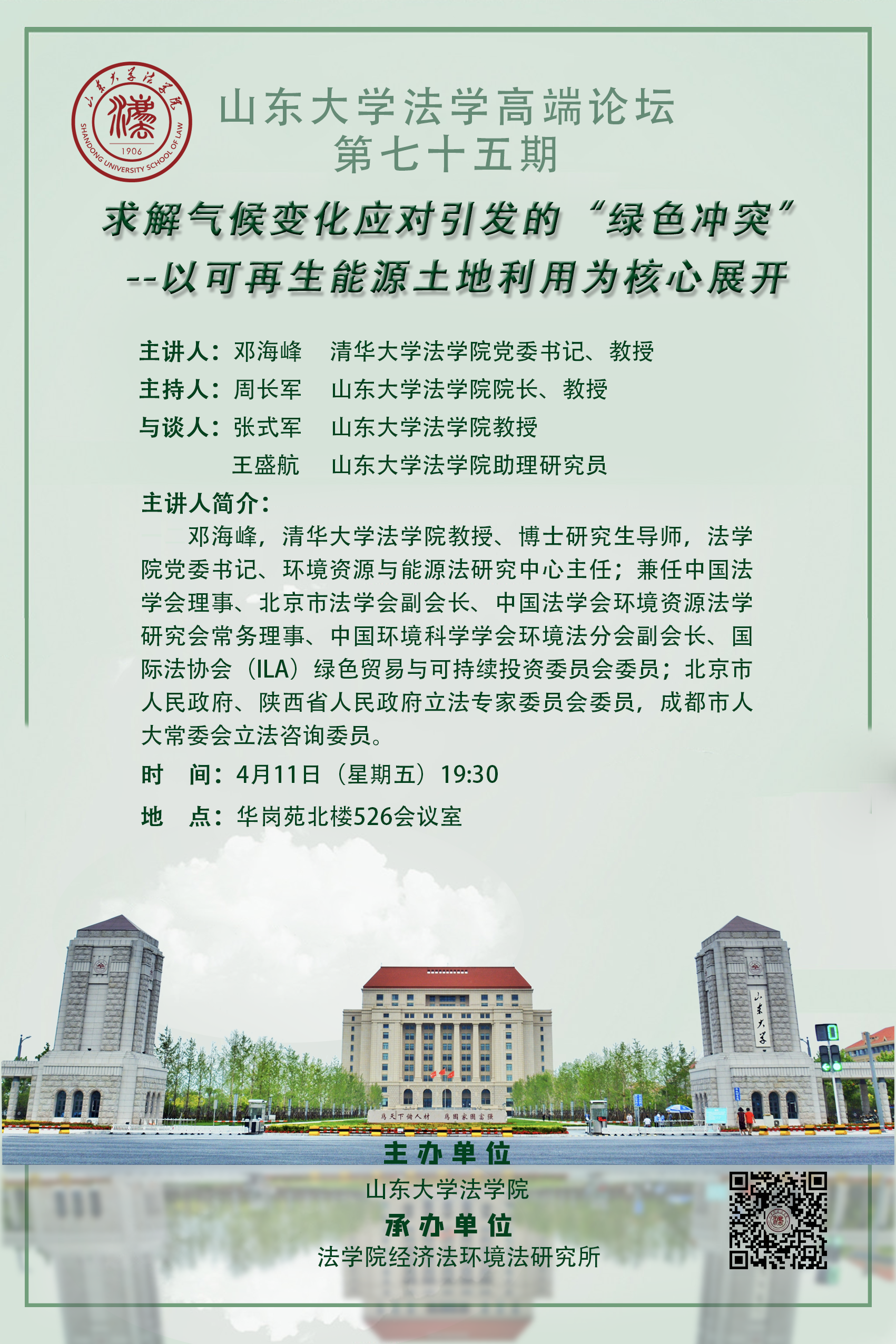讲座预告|555050注册大白菜法学高端论坛第七十五期:求解气候变化应对引发的“绿色冲突”——以可再生能源土地利用为核心展开