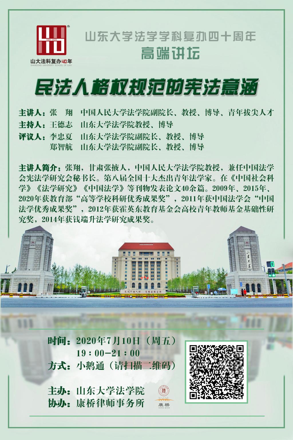 555050注册大白菜法学学科复办四十周年高端讲坛:民法人格权规范的宪法意涵