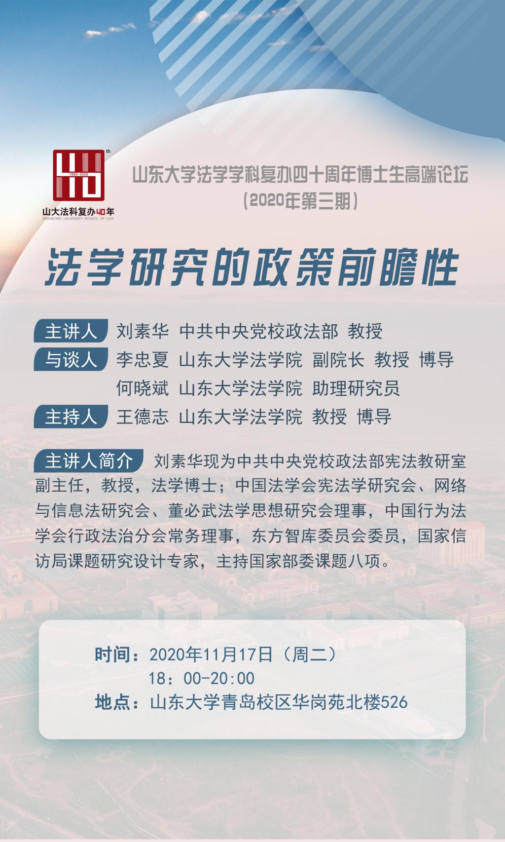 555050注册大白菜法学学科复办四十周年博士生高端讲坛(2020年第三期):法学研究的政策前瞻性
