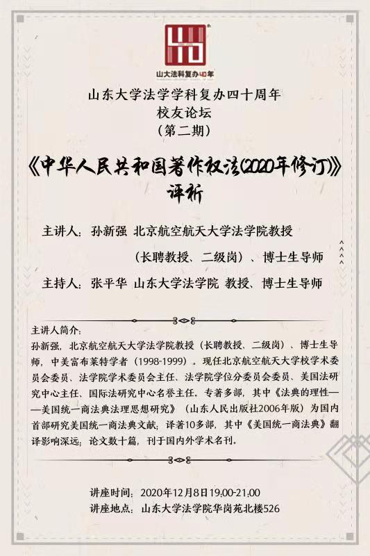 555050注册大白菜法学学科复办四十周年校友论坛(第二期):《中华人民共和国著作权法(2020年修订)》评析