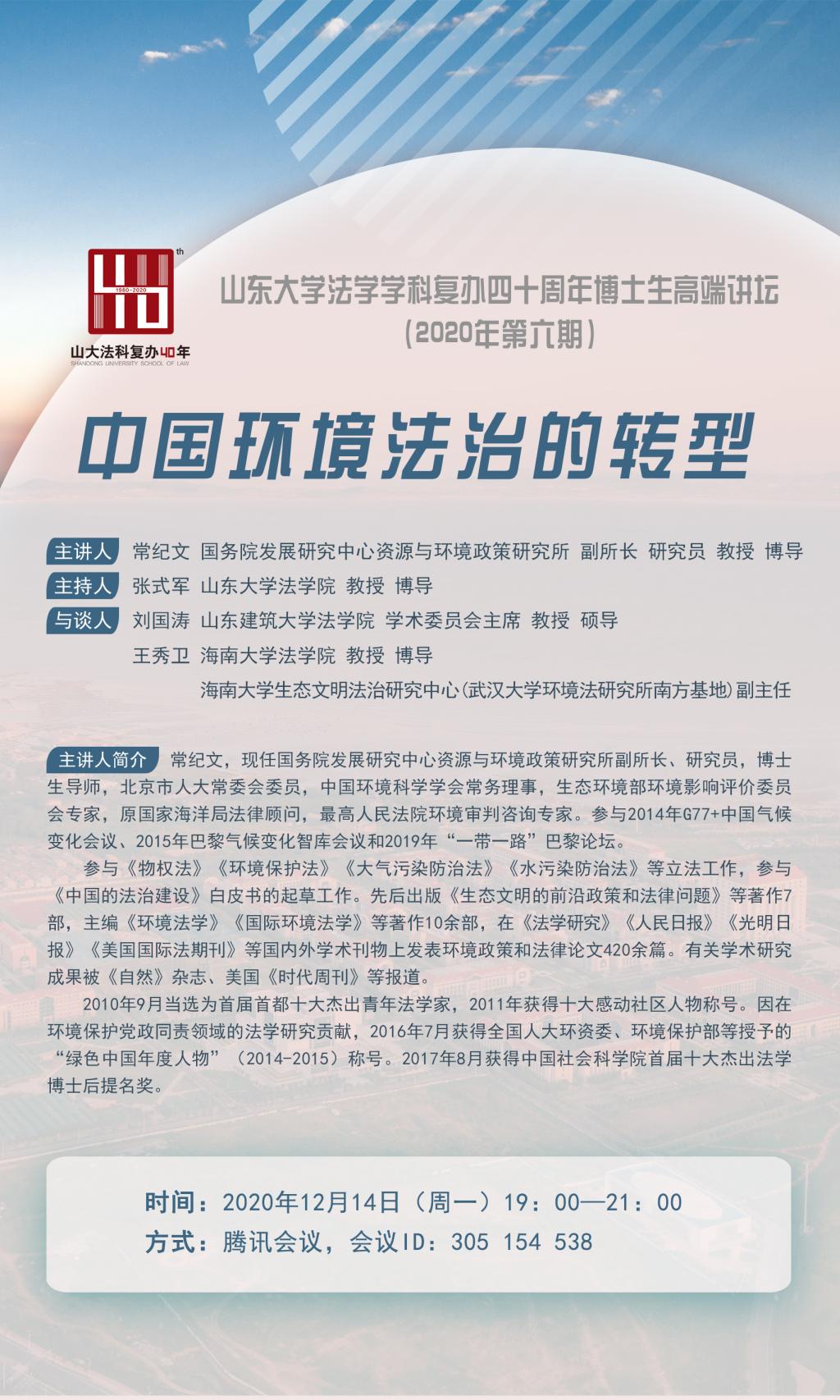 555050注册大白菜法学学科复办四十周年博士生高端讲坛(2020年第六期):中国环境法治的转型