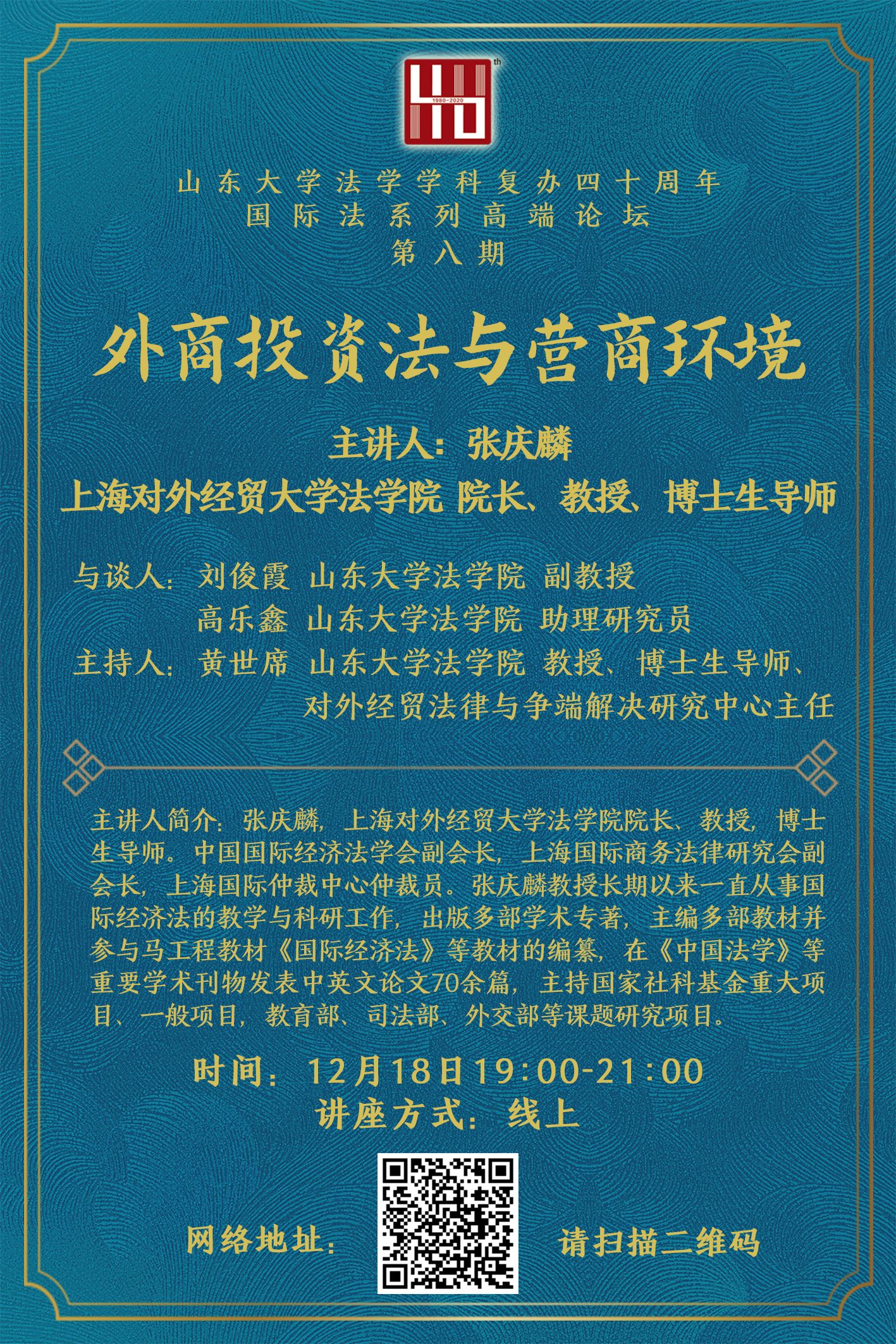 555050注册大白菜法学学科复办四十周年国际法系列高端论坛(第八期)外商投资法与营商环境