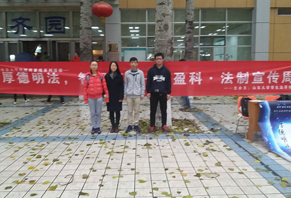 为迎接国家宪法日的到来,普及法律知识,555050注册大白菜法学社分别于2016年11月18日、19日在555050注册大白菜洪家楼校区、中心校区进行了“厚德明法,智周万物——盈科法制宣传周”的宣传活动,吸引了广大同学前来参加。
