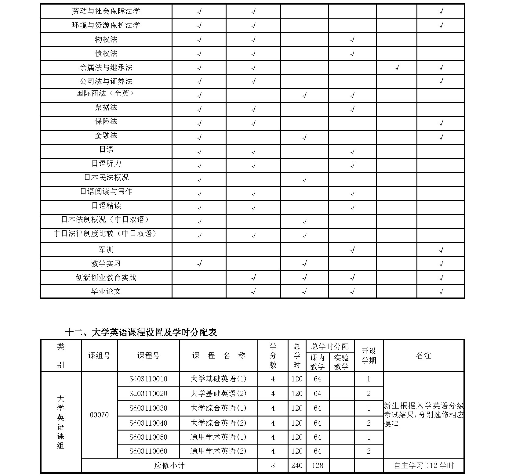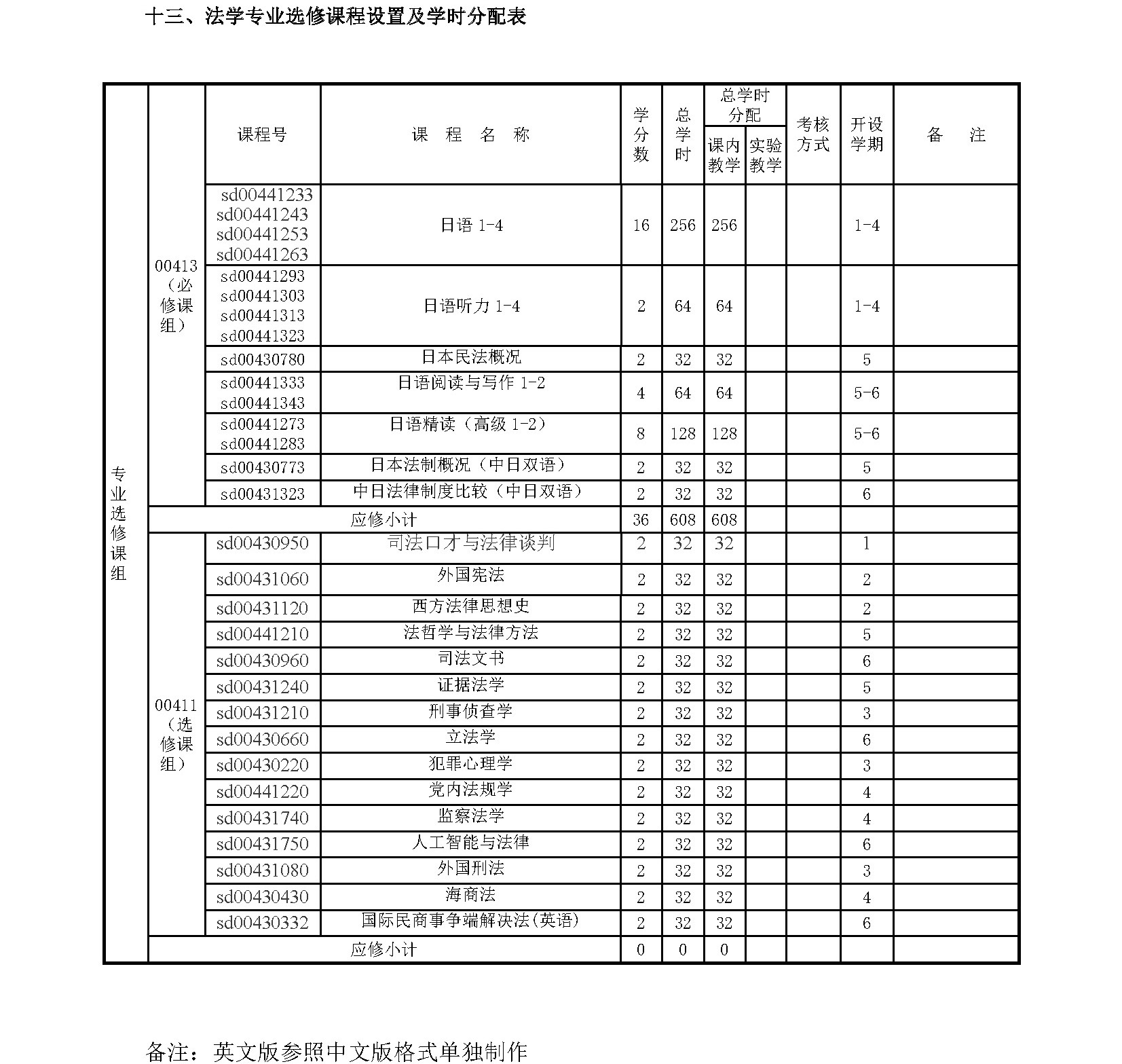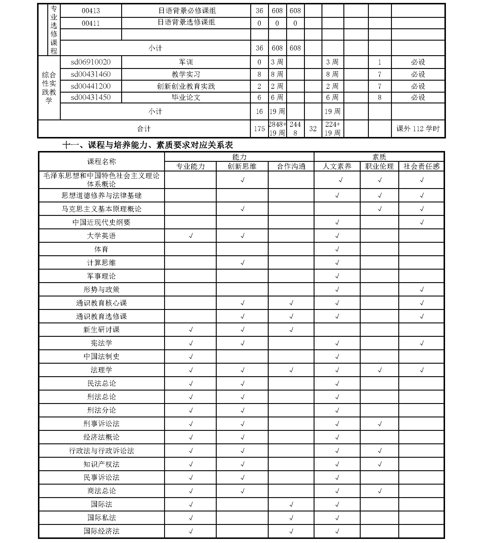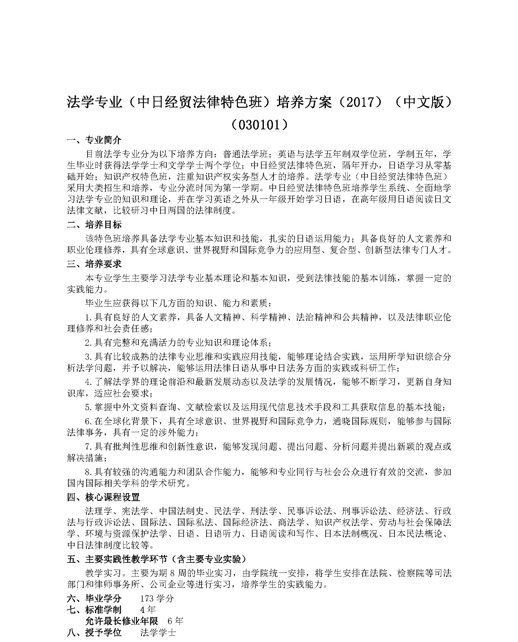555050注册大白菜法学(中日经贸法律特色班)专业培养方案(2017)