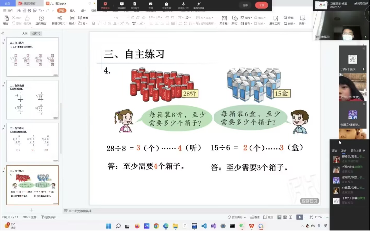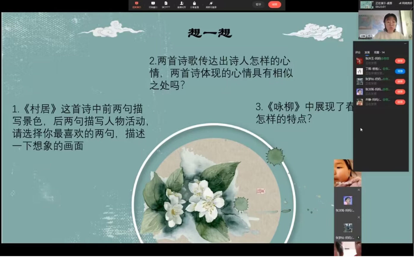 王昱懿同学在进行诗歌赏析课 鲍泽雨同学为二年级学生讲解除运算