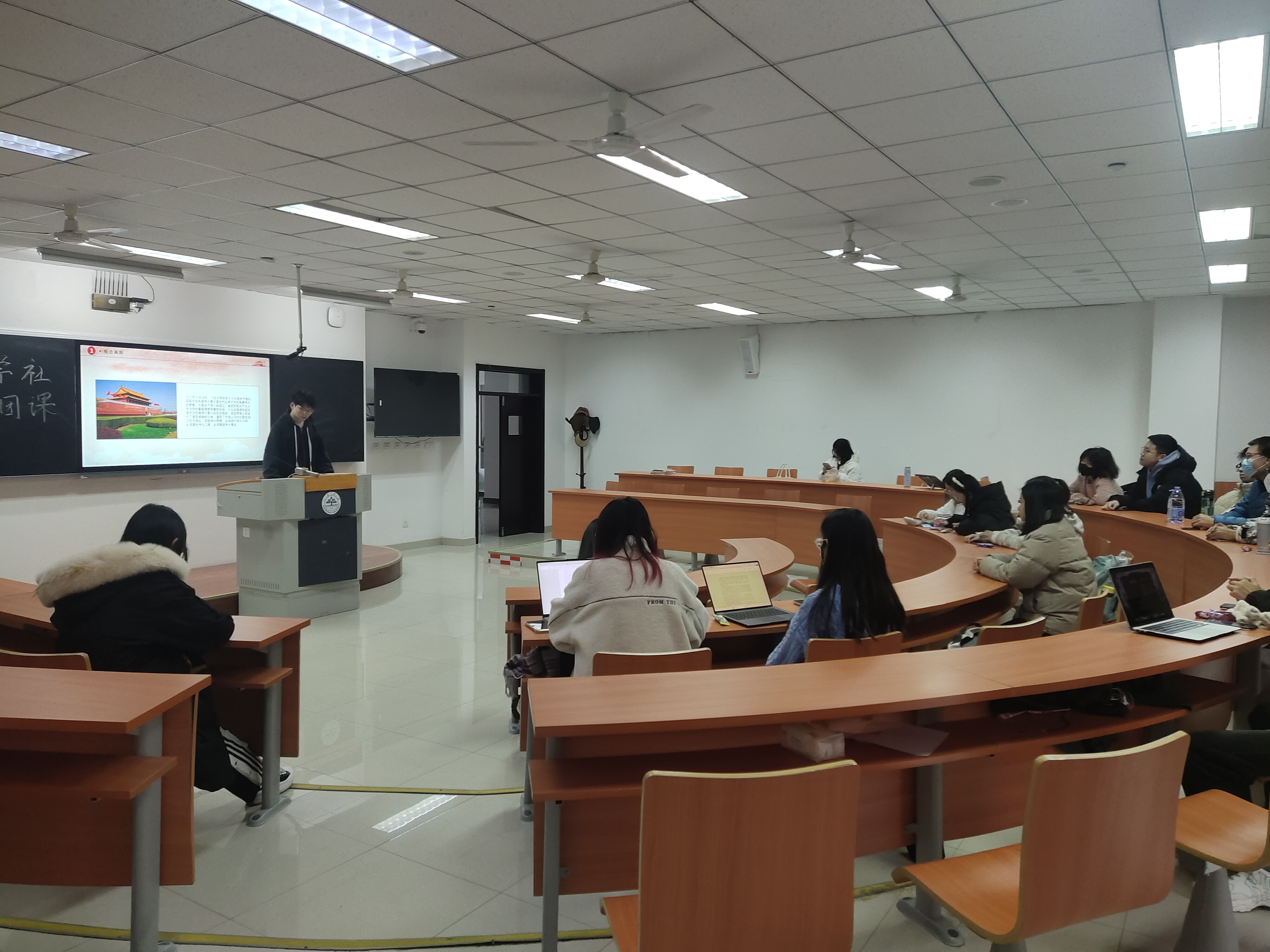 2023年11月25日至2023年12月2日,法学社团支部开展了六次主题团课,分别以“高举伟大旗帜,坚定信仰信念”“坚强核心”“《习近平著作选读》读书分享会”“中国梦,强国梦”“青年有为,挺膺担当”“国家宪法日”为主题进行学习。团课围绕两个结合、六个必须坚持、十个明确、十四个坚持、十三个方面成就、百年奋斗目标、中国梦、宪法精神等内容进行深入讨论。团支部成员纷纷表示,通过本次学习,更加深入地了解了新时代新征程党和国家事业发展的目标任务,领悟了新时代团员的使命担当和历史重任。
